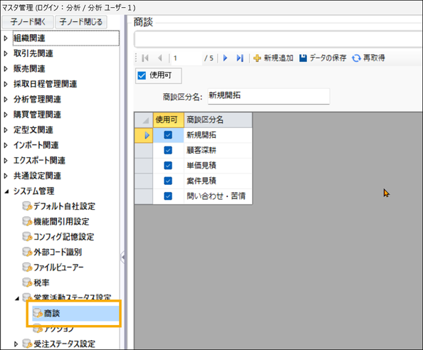 ▼「商談区分」マスタ