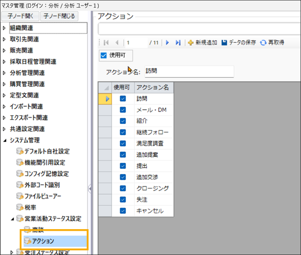 営業活動ステータス設定マスタ