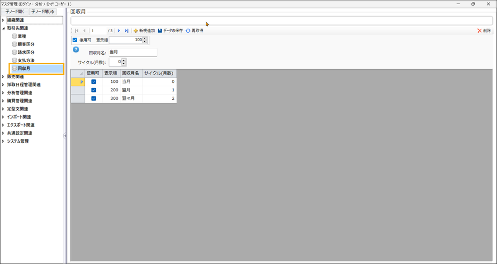 請求に対する入金が発生する月(回収サイクル)を登録します。